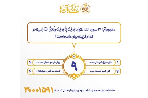 سوال روز نهم مسابقه پیامکی زندگی با آیه ها در استان کرمانشاه